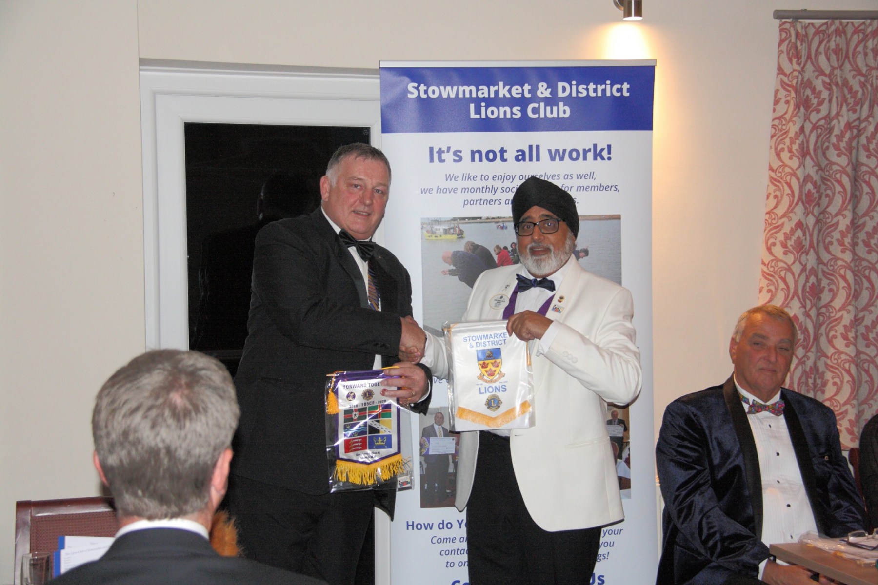 On 5th October, members of the Lions Club of Stowmarket and District gathered with their guests and friends to celebrate the Club’s 39 Charter Anniversary.  The president’s guests on were the District Governor of 105CE, Lion Gurcharan Manku and the Mayor of Stowmarket, Paul Ekpenyong.  Visiting Lion and responding to the toast on behalf of the guests was Lion Malcolm Collins of Filey Lions Club.