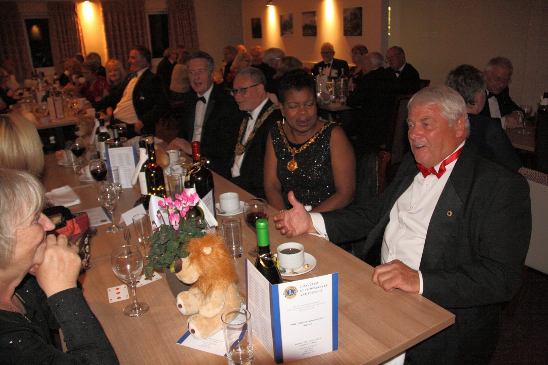 On 5th October, members of the Lions Club of Stowmarket and District gathered with their guests and friends to celebrate the Club’s 39 Charter Anniversary.  The president’s guests on were the District Governor of 105CE, Lion Gurcharan Manku and the Mayor of Stowmarket, Paul Ekpenyong.  Visiting Lion and responding to the toast on behalf of the guests was Lion Malcolm Collins of Filey Lions Club.