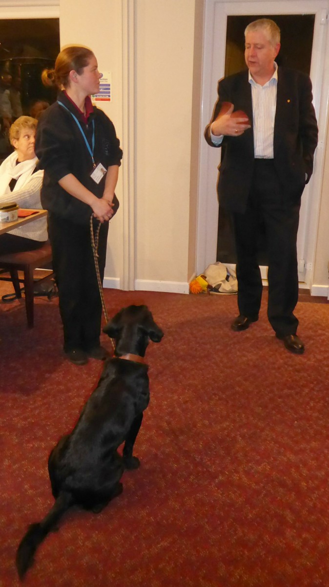 On Thursday 20th February Lions Welcomed Sophie Wellumayes and her dog Hope from the Headway Charity.  Sophie spoke enthusiastically about the work of the charity in prisons, with the probation service and with residents in care homes where Hope and the other dogs from the charity are central to the therapy needs of their clients.  Hope treated us to a display of remarkable obedience that was the envy of many of the dog-owners watching, focusing completely on Sophie, undistracted by what was going on around her.  Jonathan Pearce spoke for everyone when he commented on the remarkable work of the charity and thanked her for an evening that was both enjoyable and informative.